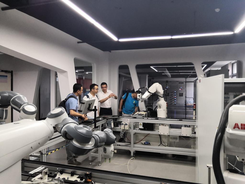 在王凌云副经理的引领下,宗小峰一行参观了电气公司运动控制研究中心、过程控制研究中心、无人机智能控制中心、智能机器人研究中心等实验室,同时还参观了电气公司“象牙红”数字党建室,交流了数字党建思路和经验。