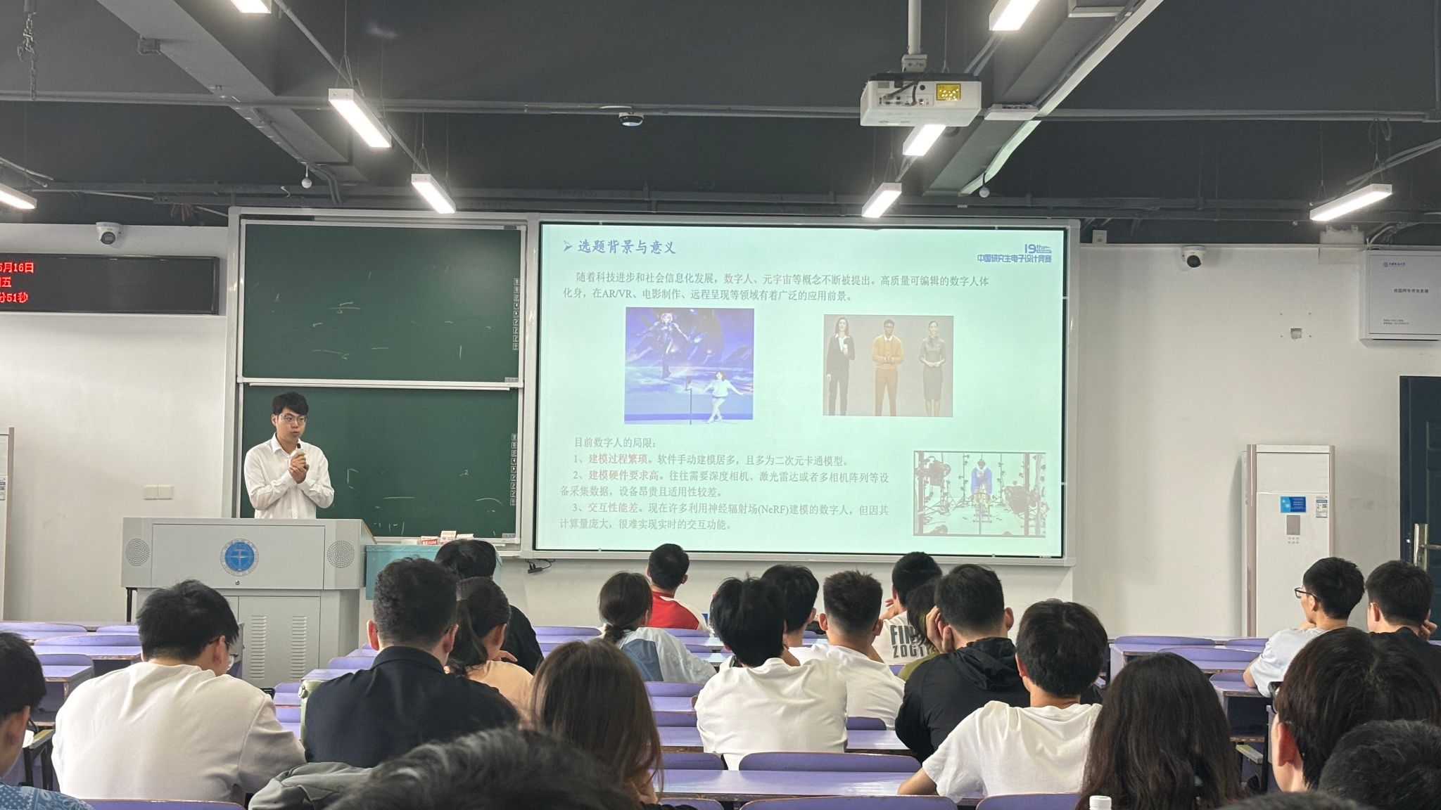 在经验分享环节,杨清儒依托“基于便携式采集设备的可实时交互数字人系统”这一获奖作品,就选题价值、系统总体设计等方面进行深入分析。并强调了前期备赛工作的重要性,建议团队多渠道获取建议,强化梳理转化,精心打磨技术论文与答辩材料,注重逻辑性与细节呈现。
