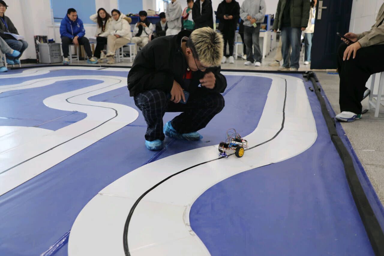 决赛中,兴趣组参赛选手需要结合赛道推演行进路线,通过蓝牙操作小车依次完成基础操控与上坡、绕锥桶等操作。光电组需通过传感器调试保障小车稳定循迹,电磁组则聚焦电磁循迹技术,重点考验算法设计与硬件设备的协同适配能力。经过激烈的比拼,最终评选出一等奖 6 名、二等奖 15 名、三等奖 25 名、优胜奖 22 名。