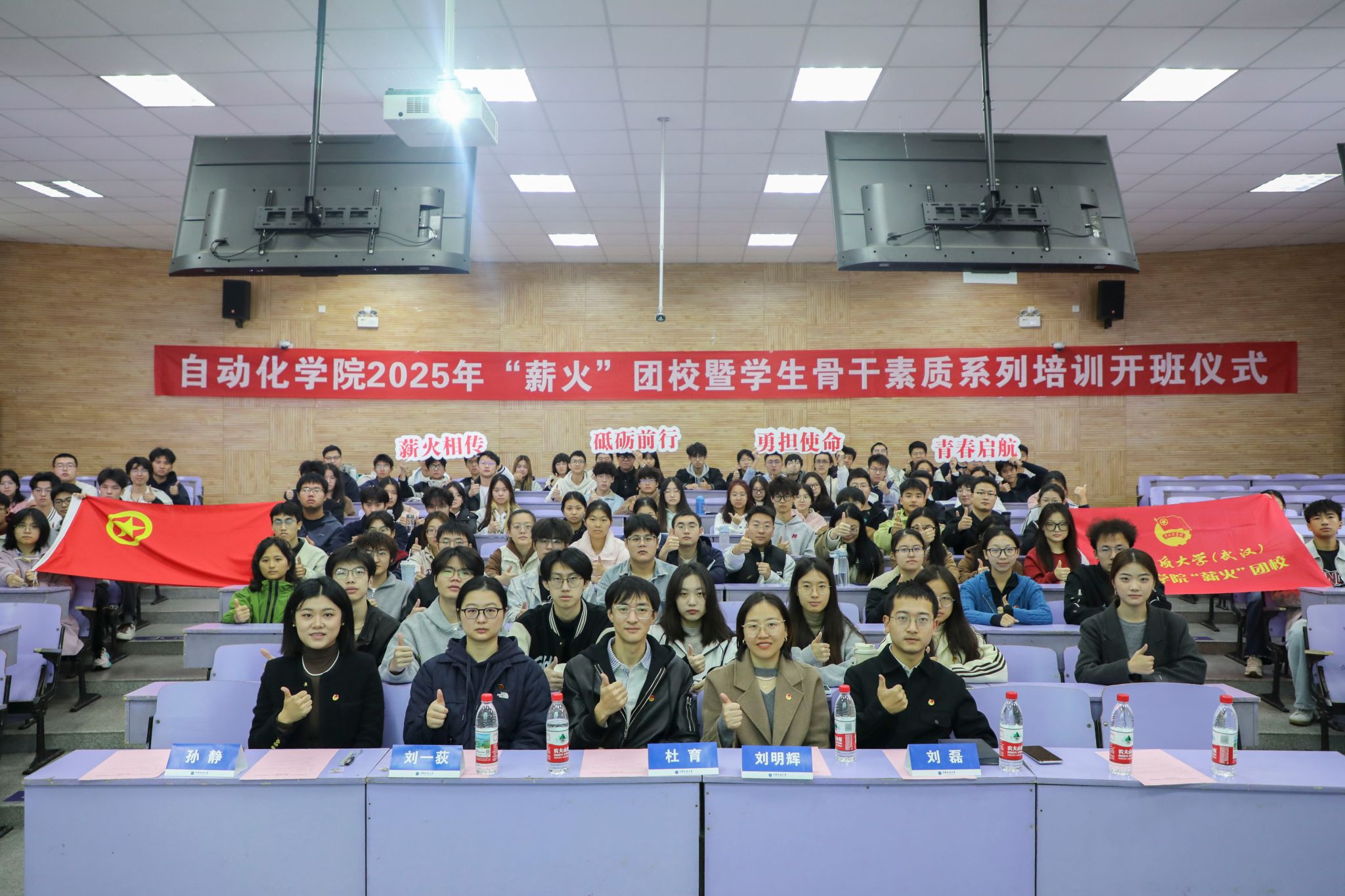 校团委副书记刘明辉代表上级团组织为“薪火”团校授旗。