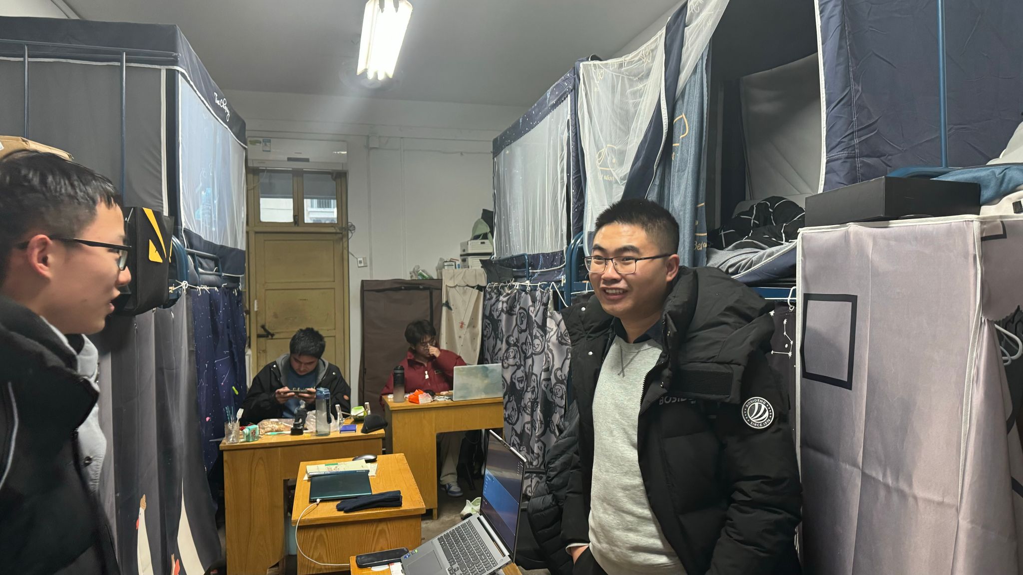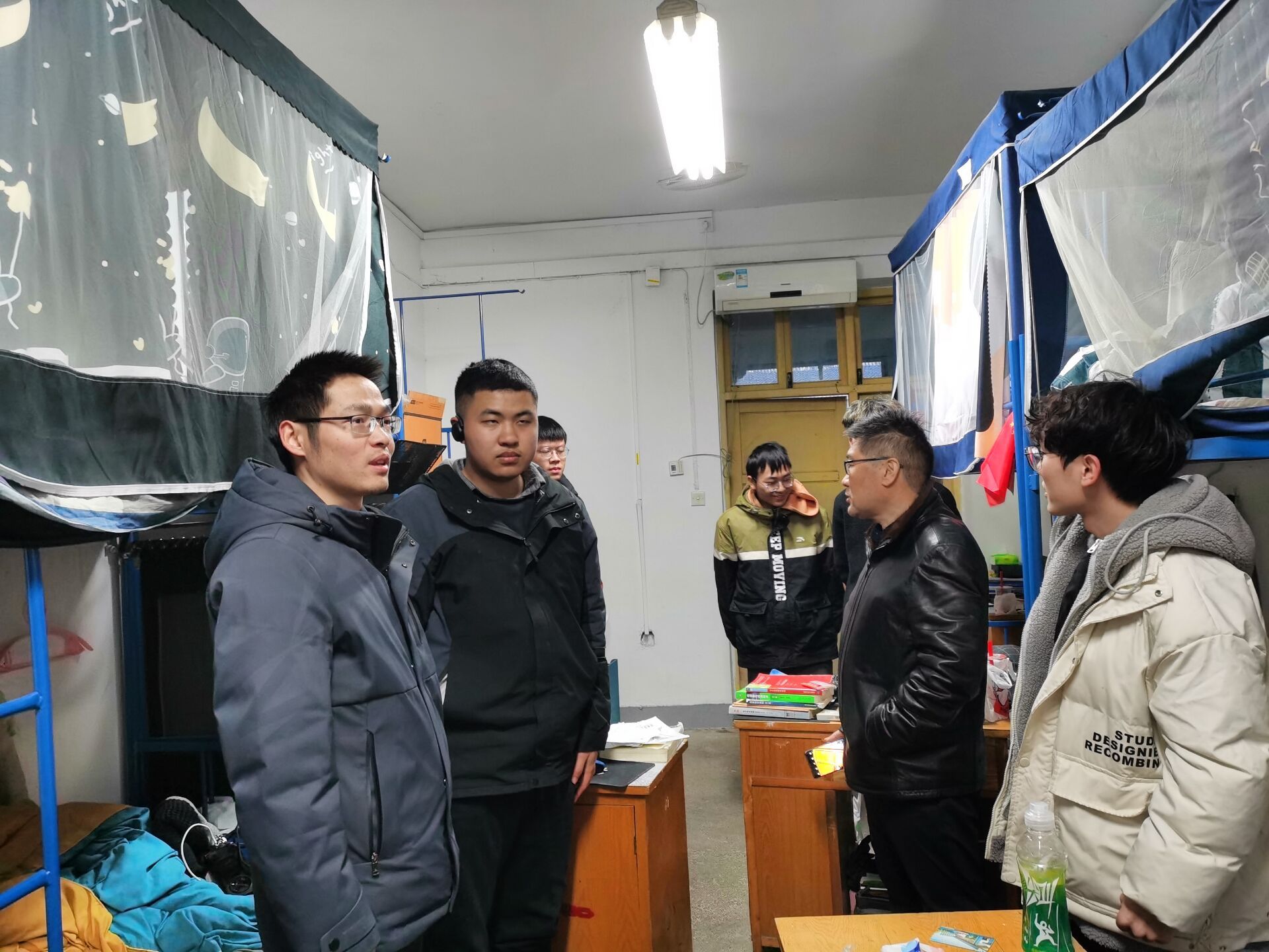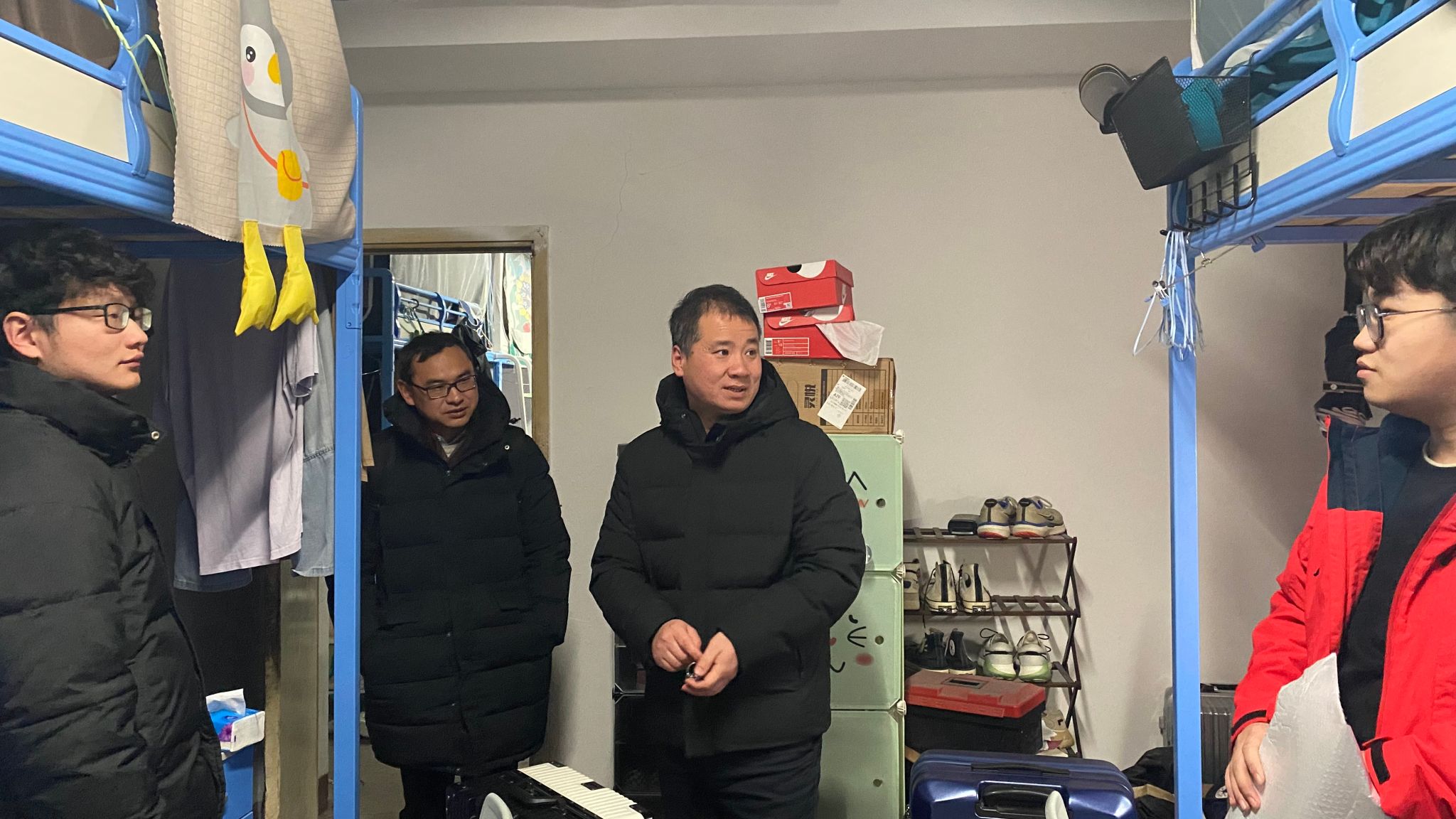 走访宿舍过程中,公司领导老师们分批来到不同年级的员工宿舍和实验室,与自动化学子进行亲切的互动交流。
