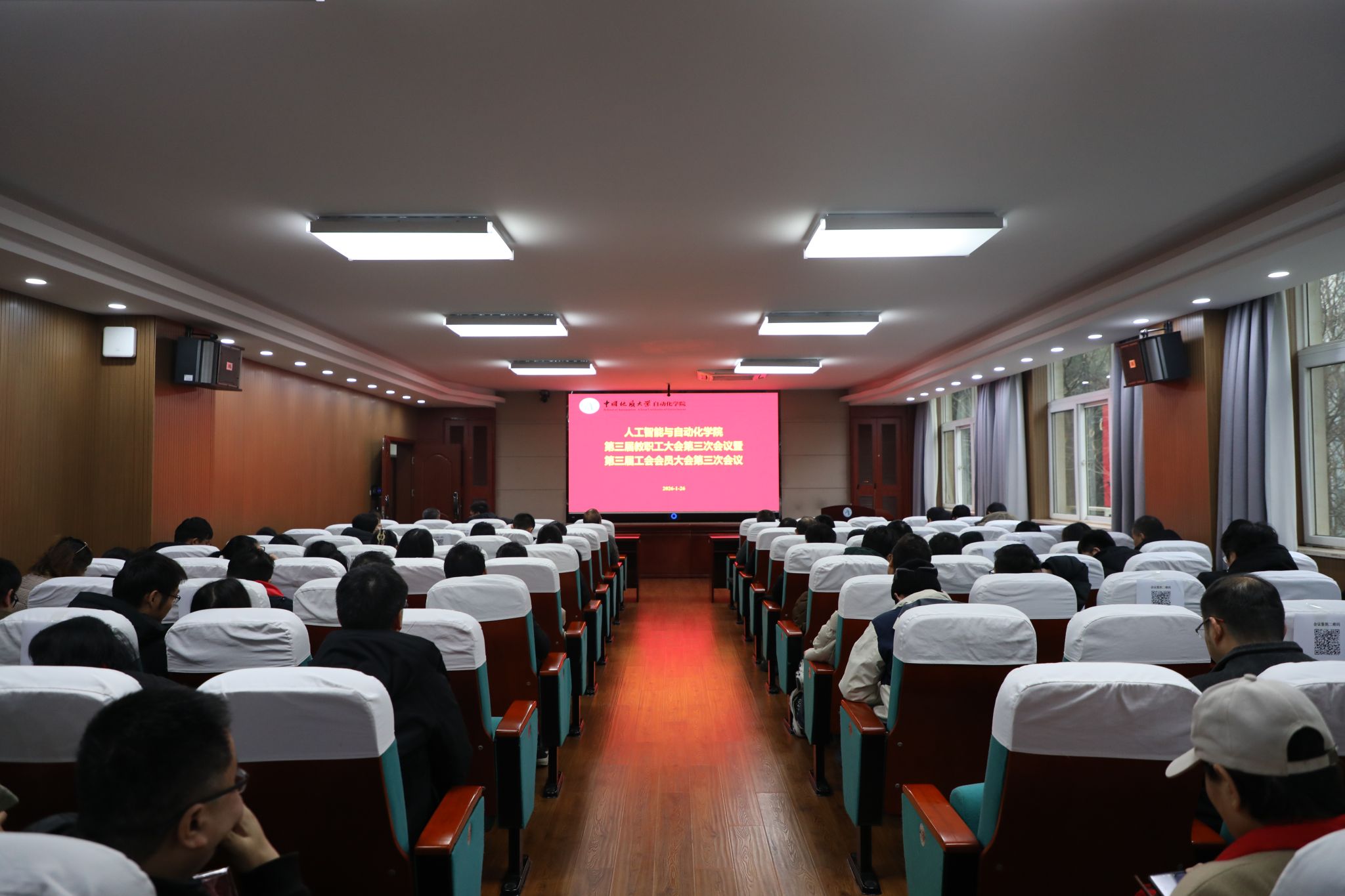 为凝聚发展共识,推进公司民主管理与民主监督,2026年1月26日下午,公司在信息楼310报告厅召开第三届教职工大会第三次会议暨第三届工会会员大会第三次会议,全体教职工参加会议。会议开始前,全体与会人员在信息楼正门口集中合影。教师们统一佩戴红色围巾,精神饱满、笑容洋溢,充分展现了公司团结奋进、昂扬向上的精神风貌。