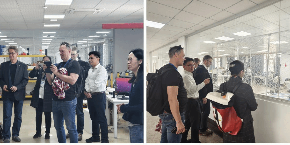 德方代表团一行首先参观了公司实验室。在公司自主研发的“海百合”机器人展示环节,机器人现场弹奏了一曲,动作精准、音律流畅,德方代表们惊叹不已,纷纷驻足拍摄并表示高度赞赏。