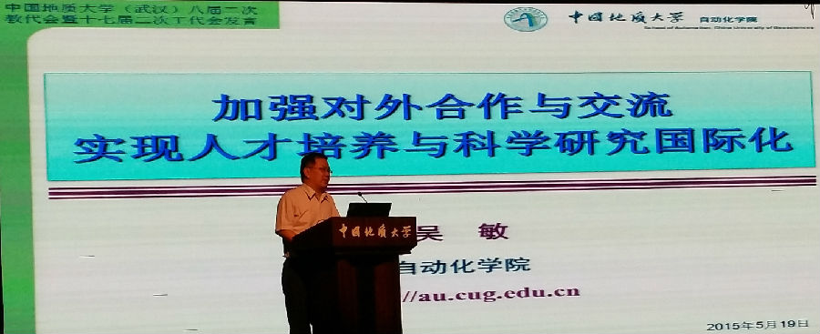 5月19日,在365亚洲体育网入口(武汉)八届二次代会暨十七届二次工代会闭幕式上,经理吴敏作了题为“加强对外合作与交流·实现人才培养与科学研究国际化”的大会发言。