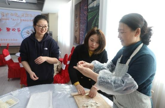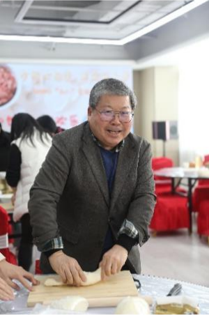 活动现场,大家热情高涨,揉面团、擀面皮、包饺子,偌大的面团,在女教工一双双巧手面前变成了外形各异的饺子,充满寓意和想象力。大家配合默契、各显身手,忙得不亦乐乎,处处洋溢着“家”的味道和温馨。公司川田誠一教授也被现场快乐的氛围感染,参与其中,体验中国的传统文化,也使活动增添了跨文化交流的色彩。本次活动,受到女教职工欢迎,也得到公司领导的重视。部分女教职工和领导在完成下午的“预答辩”后赶来参加活动。在谈笑风生中,一盘盘热腾腾的饺子端上了桌子,大家共同分享劳动成果。
