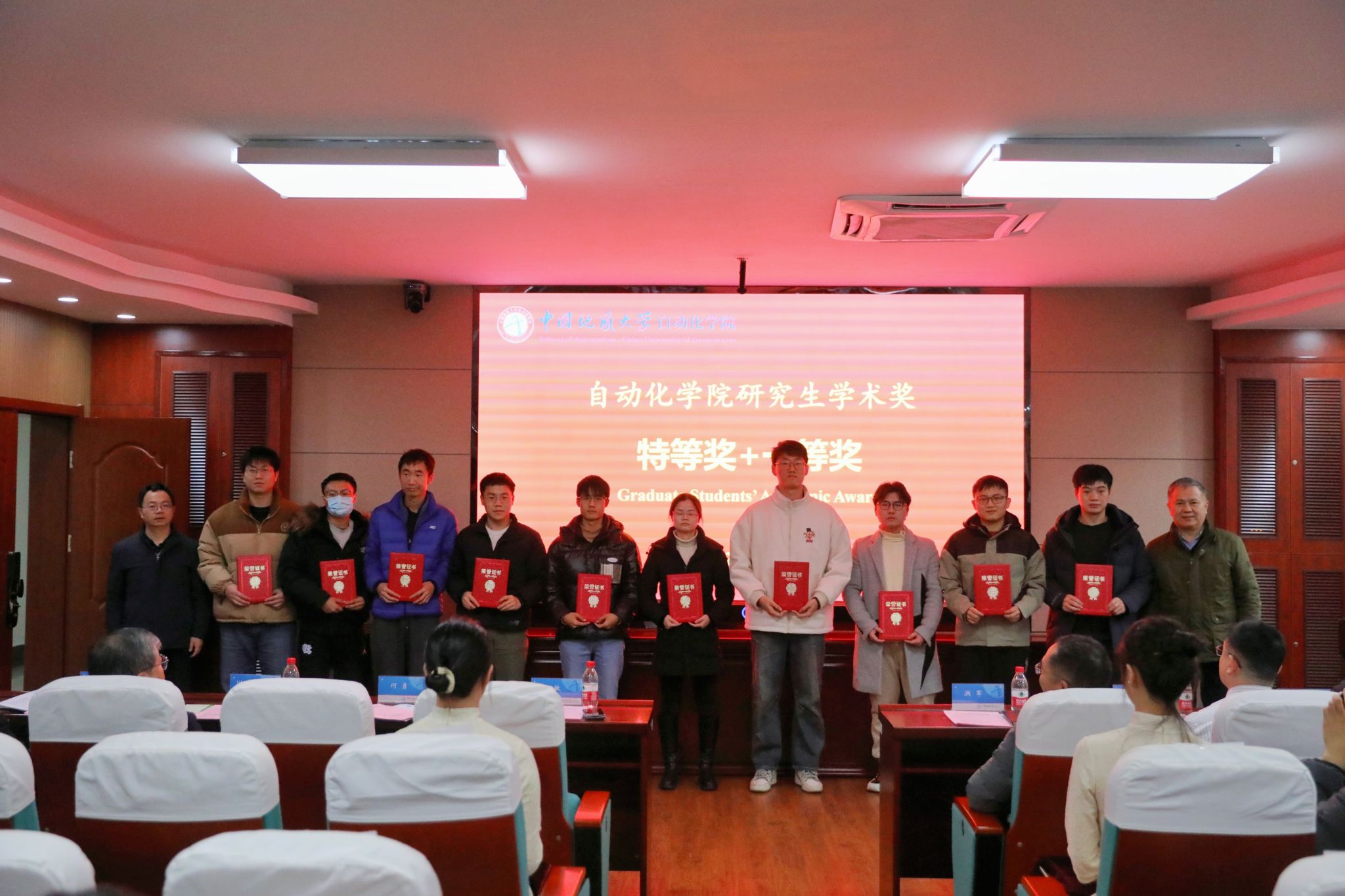 随后,副经理熊永华教授宣读了《关于表彰第九届研究生科技论文报告会优秀论文奖的决定》和《关于表彰2023年研究生学术奖的决定》。与会领导、嘉宾先后上台为获奖研究生代表进行颁奖。
