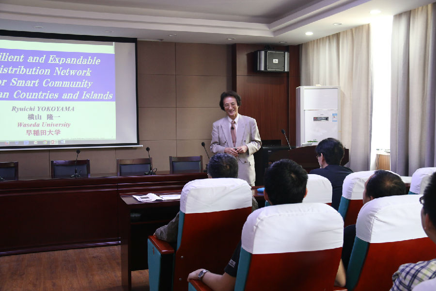 横山隆一教授在大规模电力系统最优化方面的研究获得了国际学术界和日本产业界的高度评价,是学术界和工业界具有高度影响力的科学家。他的报告题目为 “Resilient and Expandable Distribution Network for Smart Community in Asian Countries and Islands”,介绍了日本智能电网和智能社区的发展现状和特点。他针对日本地震等自然灾害较为频繁的特点,阐述一种具有弹性可扩展特性的面向集群的配电网络结构,并介绍该配电网络结构在应对大规模的自然灾害中的重要作用及其在亚洲国家未来市政建设方面的重要指导意义。