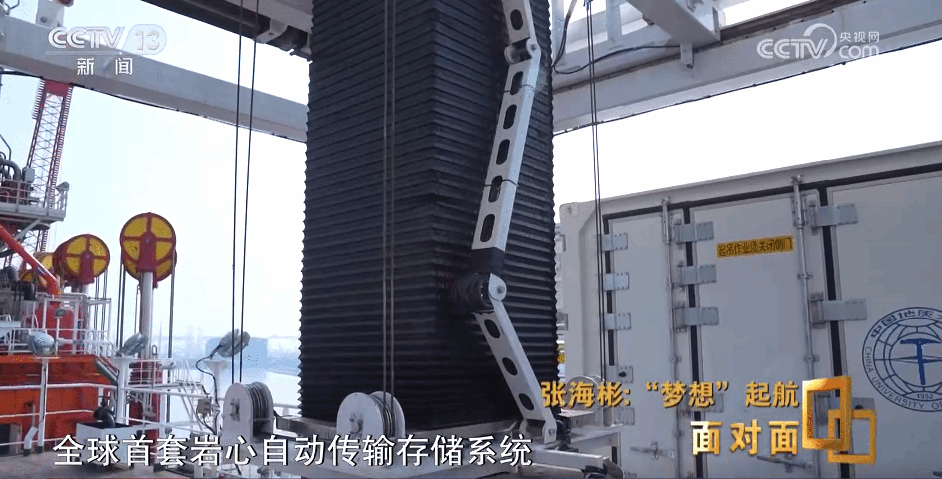 以往大洋钻探船船载岩心转运以人工搬运结合辅助机械助力的模式开展工作,存在转运安全性和效率低、转运时间长及劳动强度大等一系列问题。“梦想”号拥有的全球首套船载岩心自动传输存储系统(以下简称“船载岩心自动传输存储系统”),由岩心自动仓储系统、岩心垂直转运系统、岩心水平转运系统、集装箱自动装载系统、智慧管理与控制系统5部分组成,365best体育官网登录甘超副教授及合作团队成员(包括:公司工程公司、海洋公司、机械与电子信息公司、计算机公司师生及校外企业合作伙伴)参建船载岩心自动传输存储系统,开展了大量分析、设计、实验、安装、调试和海试工作,为顺利建造该系统、助力“梦想”号建成入列、推动海洋强国建设贡献力量。
