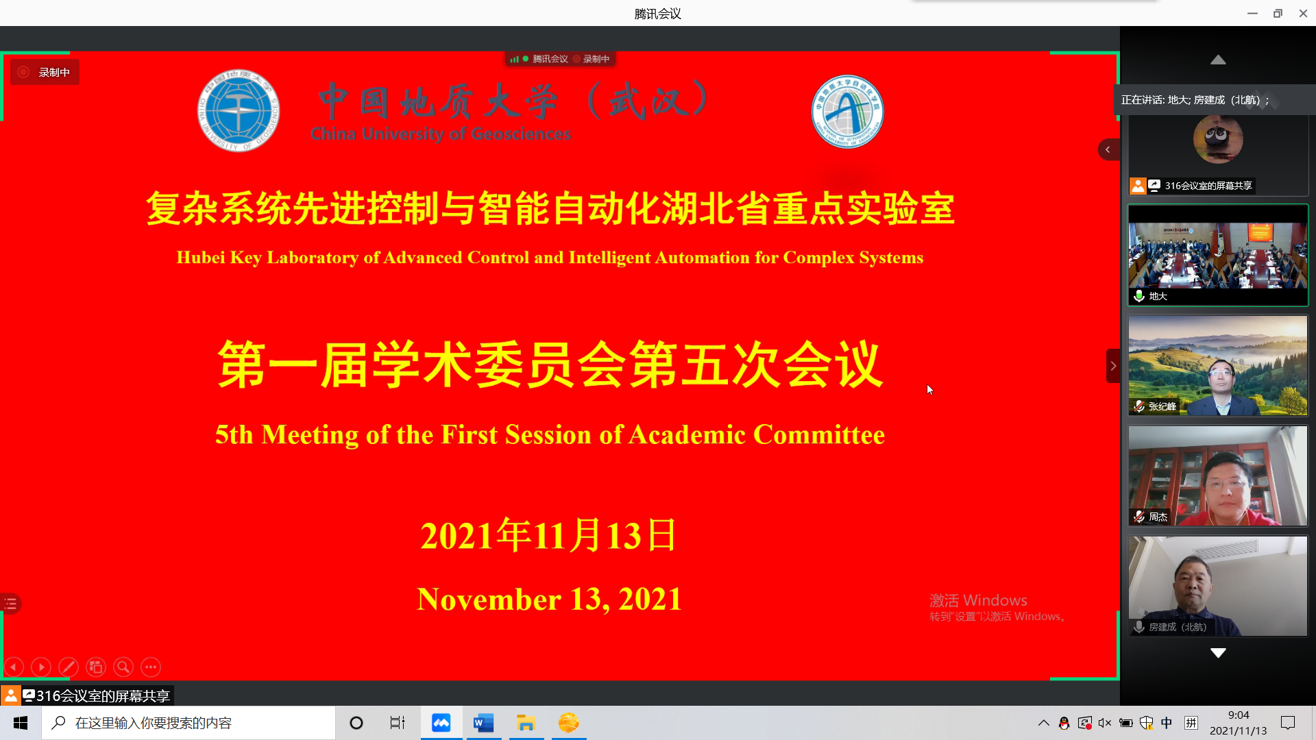 11月13日,复杂系统先进控制与智能自动化湖北省重点实验室(以下简称重点实验室)第一届学术委员会第五次会议在公司召开。重点实验室学术委员会全体成员,湖北省科技厅基础研究处王锦举处长、校科学技术发展院单华生副经理、365best体育官网登录领导及实验室全体成员、实验室开放基金项目负责人和团队成员参加会议。会议通过线上线下结合的方式召开,大连理工大学王伟教授主持会议。