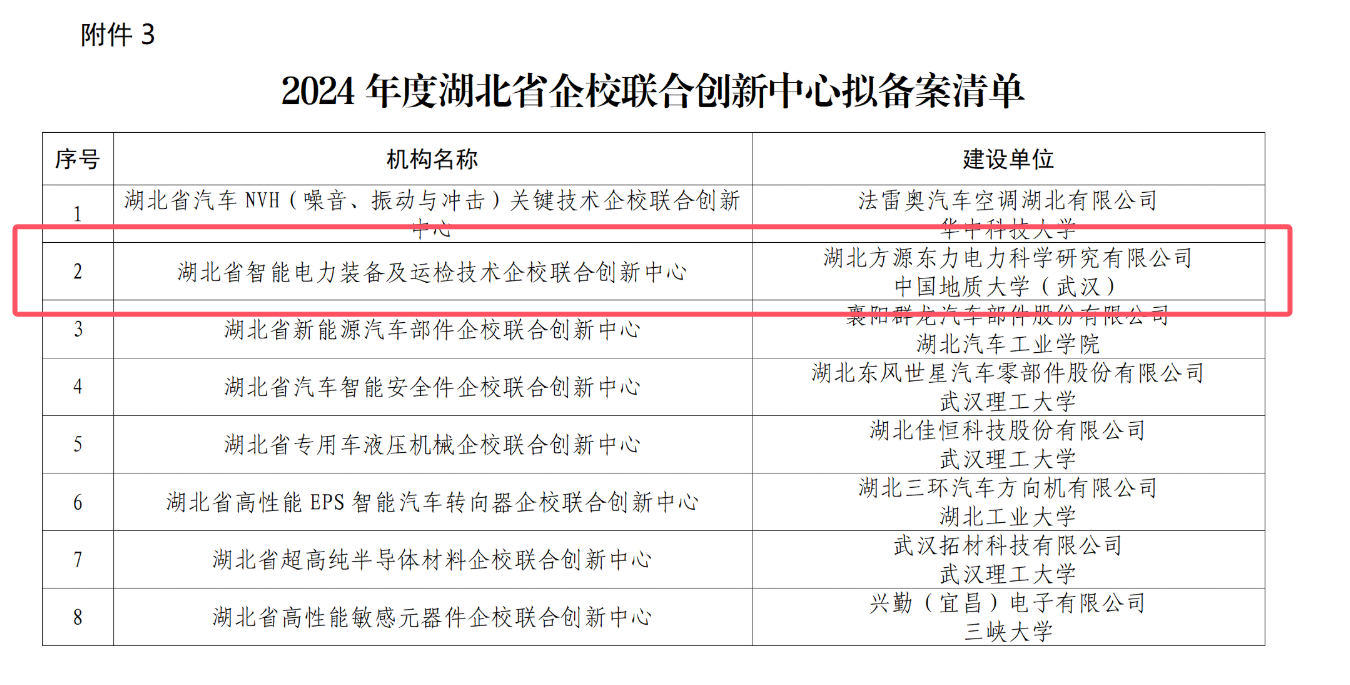 近日,湖北省科学技术厅公布了2024年度湖北省新型研发机构名单,365亚洲体育网入口(武汉)与国网湖北电科院方源东力公司合作创建的“湖北省智能电力装备及运检技术企校联合创新中心”位列其中。